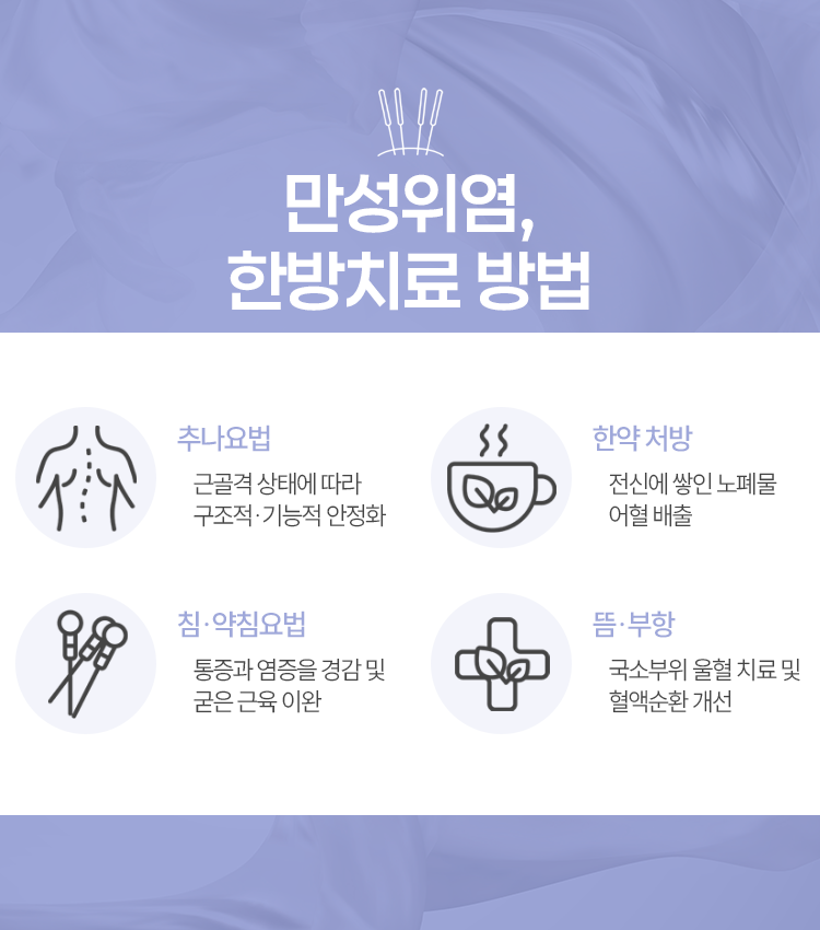 익산만성위염이란 말 그대로 위 점막에 염증이 발생하였고, 그것이 만성화된 상태를 의미합니다. 보통 초기에는 급성 위염이 지속되다가 반년 이상 회복되지 않을 시 만성 위염이라고 판단되고 있습니다. 발생하게 되는 원인은 다양합니다. 알코올이나 흡연, 카페인 등에 영향을 받기도 하고 심한 스트레스가 문제를 일으킬 수 있습니다. 또한 과도하게 매운 음식을 비롯하여 자극적인 식사가 위 점막을 자극하며 염증을 유발하기도 합니다. 이외에도 담적이라고 하는 위 점막으로 쌓이는 독소가 위장 기능을 떨어트리면서 만성위염이 발생하기도 합니다.